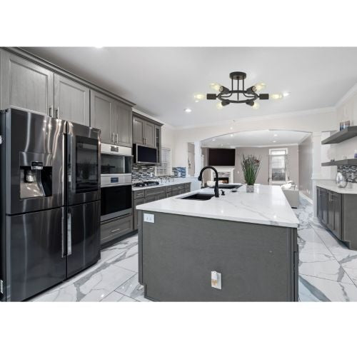 6 lights modern Sputnik light semi recessed chandelier black finish